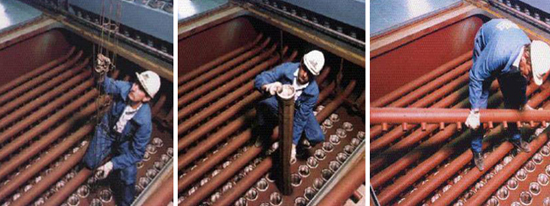 除塵器骨架更換是全部安裝中_小心和仔細的工作,因此應放在_后進行安裝,安裝時,布袋切不可與尖硬物碰撞、鉤劃,即使是小的劃痕,也會使布袋的壽命大大縮短。安裝布袋的方法是先將布袋由箱體花板孔中放入袋室,然后將袋口上部的彈簧圈捏成凹型,放入箱體的花孔板中,再使彈簧圈復原,使其緊密地壓緊在花孔圓周上,_后將除塵骨架從袋口輕輕插入,直到