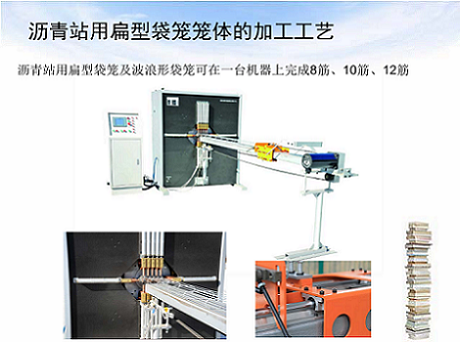 瀝青站用扁型袋籠及波浪形袋籠可在一臺機(jī)器上完成8筋、10筋、12筋.