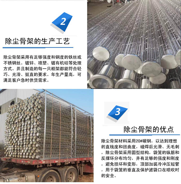 除塵框架也叫除塵框架,它是采用_技術,一次成型的全自動焊接設備制造生產的。除塵骨架性能_、無脫焊、毛刺,設計結構堅強可靠,安裝更方便,使用壽命更長。除塵骨架焊接牢固,外表光潔挺直。除塵骨架是除塵布袋的肋骨,即除塵器的重要配件。除塵骨架的質量直接影響濾袋的工作狀態與使用壽命。