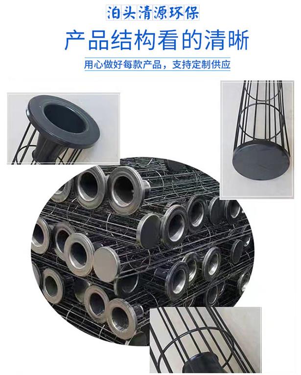 清源環保公司可以提供各種型號,圓骨架、扁骨架、彈簧骨架、多節異型骨架,材質有_、耐酸堿、碳鋼、鍍鋅、電鍍、不銹鋼等。另備有拉伸文氏管,可根據用戶要求焊接在籠口上,文氏管、短管、吊口、布袋喉箍等配件,并可按客戶要求制做非標準的籠架。